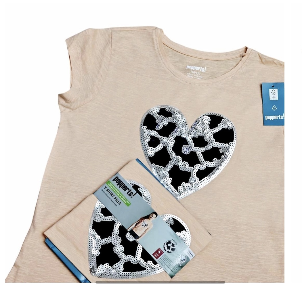 تیشرت دخترانه طرح پولکی قلب پیپرتس ۱۴-۱۲سال