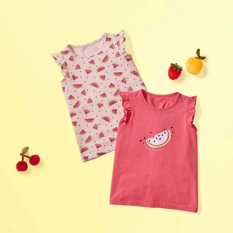 تاپ دخترانه لوپیلو مدل هندوانه ای بسته 2 تایی 4 تا6 سال